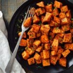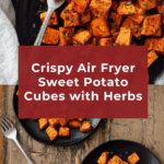 Keywords: air fryer sweet potatoes, sweet potato cubes, healthy roasted sweet potatoes, easy air fryer sides, gluten free side dish