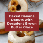 Keywords: banana donuts,baked donuts,brown butter glaze,banana dessert,baked banana treats