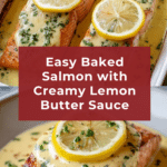 Keywords: baked salmon, lemon butter sauce, creamy lemon sauce, garlic salmon, easy salmon recipe, healthy salmon dinner