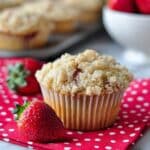 These bakery style strawberry muffins are soft, flavorful, and topped with a sweet crumbly crust. Loaded with fresh strawberries, they’re perfect for breakfast or a cozy brunch treat.