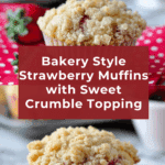 Keywords: strawberry muffins, bakery style muffins, breakfast muffins, crumb topping, fresh strawberries, homemade muffins