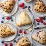 Keywords: scones, berry scones, chocolate chip scones, breakfast pastries, flaky scones, baking