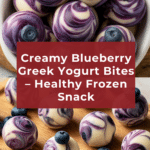 These Blueberry Greek Yogurt Bites are a creamy, refreshing, and healthy snack or dessert made by swirling a homemade blueberry compote into Greek yogurt and freezing the mixture in mini molds. With a balance of natural sweetness from honey and a burst of fresh blueberry flavor, these bites offer a guilt-free indulgence that’s perfect for warm days or anytime you crave a cool treat.