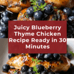 Blueberry Thyme Chicken is a delightful and elegant dish featuring juicy, seared chicken breasts bathed in a luscious, tangy blueberry and balsamic sauce infused with fresh thyme. Perfectly balanced with sweet and savory flavors, this recipe is simple to prepare yet impressive enough for weeknight dinners or special occasions.