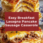 This Breakfast Lasagna: Pancake Sausage Casserole is a hearty, layered breakfast dish combining fluffy pancakes, savory breakfast sausage, and melted cheese. Baked to golden perfection and drizzled with maple syrup, it’s a crowd-pleasing casserole perfect for weekend mornings or brunch gatherings.
