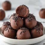 Decadent and easy-to-make Brownie Truffles combining fudgy brownies with creamy full-fat cream cheese, coated in luscious melted chocolate and decorated with colorful sprinkles. These bite-sized treats are perfect for parties, gifts, or indulging anytime you crave a rich chocolate dessert.