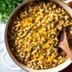 Keywords: cheeseburger casserole, ground beef casserole, easy dinner, comfort food, one-pan meal, macaroni and cheese casserole