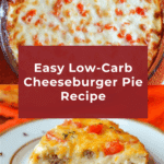 This Cheeseburger Pie is a savory, low-carb dish combining ground beef, flavorful onions, and a cheesy almond and coconut flour crust. Baked to golden perfection, it’s a satisfying twist on classic cheeseburgers, perfect for a hearty meal that’s gluten-free and packed with protein.