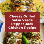 Keywords: Cheesy grilled chicken, salsa verde chicken, pepper jack cheese chicken, spicy grilled chicken, Mexican chicken recipe