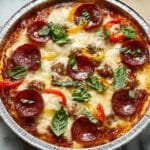 This Cheesy Low Carb Pizza Bowl offers a delicious and satisfying meal that combines gooey melted mozzarella cheese, savory sausage, and a flavorful sugar-free marinara sauce, topped with optional pepperoni, olives, and bell peppers. Baked to bubbly perfection, it’s an easy low-carb dish perfect for pizza lovers looking to enjoy all the flavor without the carbs of traditional crusts.