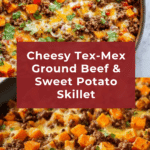 This Cheesy Tex-Mex Ground Beef & Sweet Potato Skillet is a hearty and flavorful one-pan meal combining seasoned ground beef, tender sweet potatoes, and vibrant Tex-Mex ingredients. It’s easy to prepare, packed with savory spices, melted cheese, and topped with fresh garnishes, making it perfect for a comforting weeknight dinner.