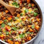 PrintCheesy Tex-Mex Ground Beef & Sweet Potato Skillet Recipe