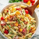 Keywords: club sandwich pasta salad, chicken pasta salad, bacon pasta salad, easy pasta salad recipe, creamy pasta salad