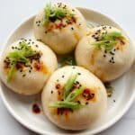 - Serve: Remove the buns from the steamer, garnish with finely chopped spring onions and drizzle with chilli oil. Serve immediately while warm.