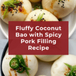 Coconut Bao are soft, fluffy steamed buns filled with a fragrant pork mince mixture. These homemade buns combine subtle coconut flavors with spicy and savory notes, making them perfect for a comforting snack or meal.