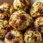 Keywords: cranberry stuffing balls, turkey stuffing balls, holiday appetizers, Thanksgiving side dish, baked stuffing balls
