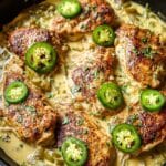 This Creamy Pepperoncini Chicken Skillet is a flavorful, easy-to-make dish featuring tender chicken strips simmered in a rich and creamy sauce infused with tangy pepperoncini peppers, Parmesan cheese, and Italian seasoning. Perfect served over rice, pasta, or vegetables for a satisfying meal.