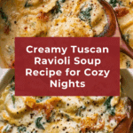 Creamy Tuscan Ravioli Soup is a comforting and flavorful dish perfect for chilly evenings. Packed with Italian sausage, sun-dried tomatoes, and tender ravioli, this soup blends rich creaminess with vibrant herbs for a satisfying meal.