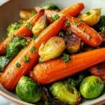 Keywords: roasted Brussels sprouts, maple glazed carrots, healthy side dish, vegan roasted vegetables, crispy vegetables, fall recipes, easy vegetable side