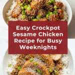Keywords: Crockpot chicken, slow cooker sesame chicken, easy chicken dinner, honey sesame chicken, weeknight crockpot recipe