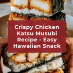 Crunchy Chicken Katsu Musubi is a delicious fusion of Japanese comfort food and Hawaiian snack culture. Crispy fried chicken atop flavorful sushi rice, wrapped in nori, makes for a perfect handheld treat or lunchbox favorite.
