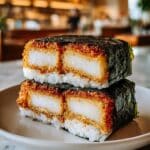 Crunchy Chicken Katsu Musubi is a delicious fusion of Japanese comfort food and Hawaiian snack culture. Crispy fried chicken atop flavorful sushi rice, wrapped in nori, makes for a perfect handheld treat or lunchbox favorite.