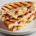 - Cook the Sandwiches: Heat a heavy-duty skillet over medium heat. Place one sandwich in the skillet and cook for 2 minutes on one side, then flip and cook an additional 2 minutes, or until the bread is golden brown and the cheeses inside have melted thoroughly.