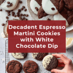 Espresso Martini Cookies are rich, chocolatey cookies infused with the bold flavor of espresso and a hint of rum extract. These decadent treats are topped with a smooth white chocolate dip and garnished with coffee beans for an elegant finish, perfect for coffee lovers looking for a boozy dessert twist.