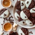 Espresso Martini Cookies are rich, chocolatey cookies infused with the bold flavor of espresso and a hint of rum extract. These decadent treats are topped with a smooth white chocolate dip and garnished with coffee beans for an elegant finish, perfect for coffee lovers looking for a boozy dessert twist.