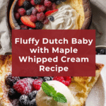 This Fluffy Dutch Baby with Maple Whipped Cream is a light and airy oven-baked pancake that puffs up beautifully in a hot cast-iron skillet. Infused with vanilla and a touch of maple syrup, it is topped with luscious maple whipped cream and fresh berries, making it a delicious, impressive breakfast or brunch treat.