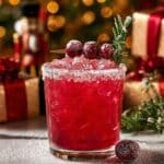 This Frosted Mistletoe Margarita is a festive and refreshing holiday cocktail perfect for parties or cozy gatherings. Combining silver tequila, tart cranberry juice, zesty orange liqueur, fresh lime juice, and a touch of honey, it’s blended with ice to create a smooth, slushy margarita. The salt and sugar rim along with garnishes of rosemary sprigs and sugared cranberries evoke a wintery, celebratory vibe.