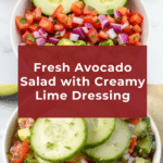 Keywords: Avocado salad, fresh salad, lime dressing, healthy salad, vegetarian salad