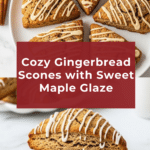 Keywords: Gingerbread scones, holiday scones, spiced scones, molasses scones, maple glaze, breakfast scones