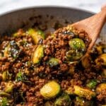 A flavorful and healthy one-pan meal featuring lean ground beef sautéed with caramelized Brussels sprouts, seasoned with soy sauce, garlic, and a touch of sriracha, then finished with sweet chili sauce and a fresh lime juice drizzle. Perfect for a quick and satisfying dinner served over rice or your favorite grain.