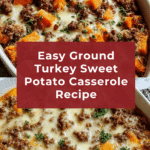 This Ground Turkey Sweet Potato Casserole is a nutritious and comforting dish featuring lean ground turkey, tender cubed sweet potatoes, sautéed vegetables, and melted cheddar and mozzarella cheese, baked to golden perfection. It’s a hearty meal perfect for dinner that combines wholesome ingredients with simple seasoning for a flavorful and satisfying casserole.