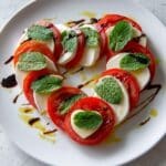 This elegant Heart Shaped Caprese Salad is a fresh and visually stunning appetizer combining vine tomatoes, bocconcini cheese, and aromatic basil leaves arranged into a charming heart shape. Finished with a drizzle of olive oil and balsamic glaze, it’s perfect for romantic occasions or a beautiful starter.