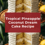 This Homemade Pineapple Coconut Dream Cake is a tropical delight that combines moist cake layers with the sweet flavors of pineapple and coconut. Topped with creamy cream cheese frosting and garnished with pineapple chunks and toasted coconut flakes, it’s perfect for any occasion that calls for a special treat.