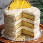 Keywords: pineapple cake, coconut cake, tropical cake, cream cheese frosting, homemade cake, dessert recipe