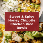 These Honey Chipotle Chicken Rice Bowls combine smoky, sweet, and tangy flavors for a satisfying and flavorful meal. With tender marinated chicken, fresh avocado corn salsa, and crumbly cheese, they make a perfect weekday dinner or casual gathering dish.