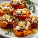 - Add Toppings: Sprinkle each sweet potato round generously with crumbled feta cheese and freshly chopped thyme for a burst of savory and herbal notes.