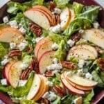 A fresh and vibrant Honeycrisp Apple and Feta Salad featuring mixed greens, crisp Honeycrisp apples, tangy feta cheese, crunchy toasted nuts, and dried cranberries, all tossed in a sweet and tangy honey mustard vinaigrette. Perfect as a light main course or a flavorful side dish.