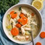 Keywords: Instant Pot chicken soup, white bean soup, gluten free soup, coconut milk soup, healthy chicken soup, easy soup recipe