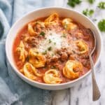 This comforting Italian Tortellini Soup combines tender ground turkey, aromatic herbs, and cheese-filled tortellini in a rich tomato broth. Enhanced with fresh Parmesan and creamy milk, it’s a hearty yet delicate soup perfect for any occasion.