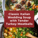 Italian Wedding Soup is a classic, comforting soup featuring tender meatballs, fresh vegetables, and small pasta in a savory chicken broth. This recipe uses ground turkey meatballs seasoned with aromatic herbs and spices, seared for extra flavor, then simmered in broth with kale, thyme, and delicate pasta. It’s a wholesome, flavorful soup perfect for warming meals.