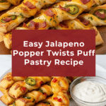 Jalapeno Popper Twists are a deliciously cheesy and spicy appetizer that’s perfect for parties or a tasty snack. These flaky puff pastry twists filled with cream cheese, cheddar, and jalapenos offer a perfect balance of heat and flavor. They’re quick to prepare and sure to impress your guests.
