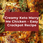 This Keto Crockpot Marry Me Chicken is a rich, creamy dish perfect for holiday gatherings or any comfort food craving. Tender chicken breasts simmered in a flavorful sauce with sun-dried tomatoes and Parmesan create a restaurant-quality meal with minimal effort.