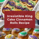 These King Cake Cinnamon Rolls are a delightful twist on traditional cinnamon rolls, combining soft, fluffy dough with a generous cinnamon-sugar filling and topped with a sweet vanilla glaze. Perfect for breakfast or dessert, they feature a tender crumb enriched with buttery flavor and a lovely balance of sweetness and spice.