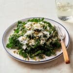 - Assemble and serve: Divide the dressed kale onto serving plates. Sprinkle the toasted chopped pistachios, toasted breadcrumbs, and grated Pecorino cheese over the top for added texture and flavor. Serve immediately.