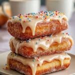 Maple Donut Bars combine the soft, cakey texture of a donut with a sweet maple glaze for a delicious treat that’s perfect any time of day. Topped with your choice of nuts, sprinkles, or even bacon, these bars offer a delightful mix of flavors and textures.
