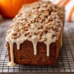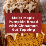 This Maple Pumpkin Bread is a moist, flavorful quick bread perfect for fall. It combines the warm spices of pumpkin pie spice and cinnamon with a sweet maple-infused batter. A crumbly pecan topping adds a delightful crunch, and a smooth maple glaze finishes it off, making it an irresistible treat for breakfast or dessert.